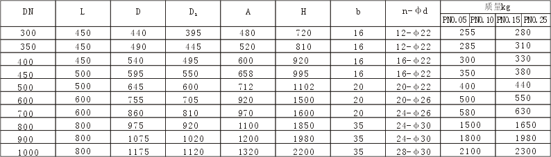 F643X-(0.5、1.0、1.5、2.0)氣動(dòng)式扇形盲板閥主要外形連及接尺寸表