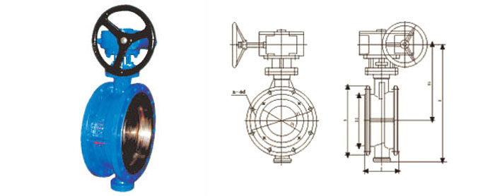 法蘭式蝸輪傳動(dòng)硬密封蝶閥(D341H-10 16)主要連接尺寸