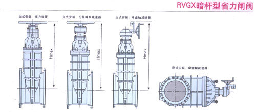 臥式安裝+傘齒輪減速器:適用于閥門安裝在淺埋害井中、僅允許較抵的操作高度、或其它安裝高度受 到限制的場(chǎng)合。減速比3~6,操作輪可在水平或豎直方向,可選開度指示、信號(hào)遠(yuǎn)傳等附加功能。