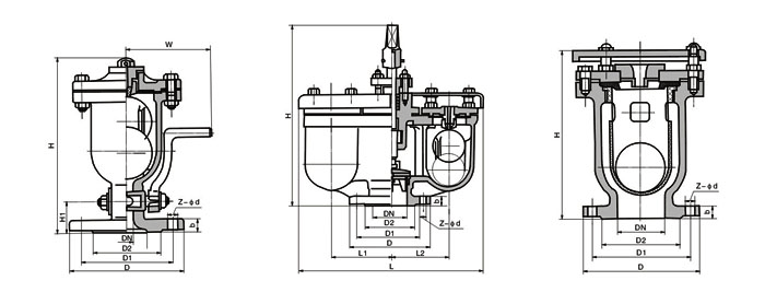 D D1 D2 B Z-ØD H H1 W